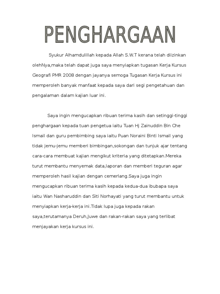 PENGHARGAAN Terlebih dahulu saya ingin mengucapkan syukur Alhamdulillah ke hadrat Allah SWT kerana di atas limpah dan kurniaNya maka dapatlah saya menyiapkan tesis ini dengan jayanya walaupun menempuhi pelbagai dugaan dan rintangan. Cara menulis penghargaan asignment by leiazaifin in types creative writing terima kasih. Mereka telah memberikan saya segala kemudahan dan sokongan moral yang.